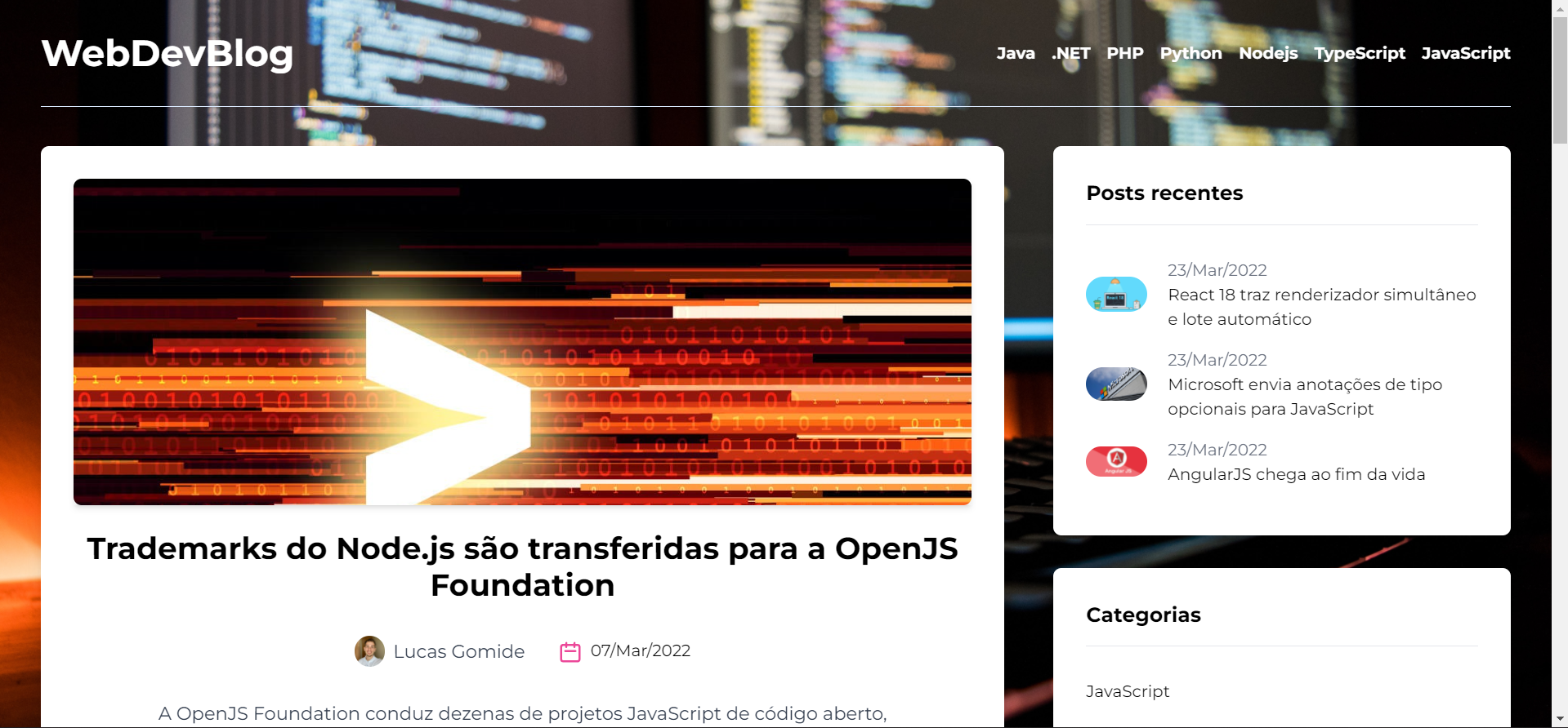 a blog about web development. developed with Reactjs, GraphQL, Tailwind CSS and Nextjs.